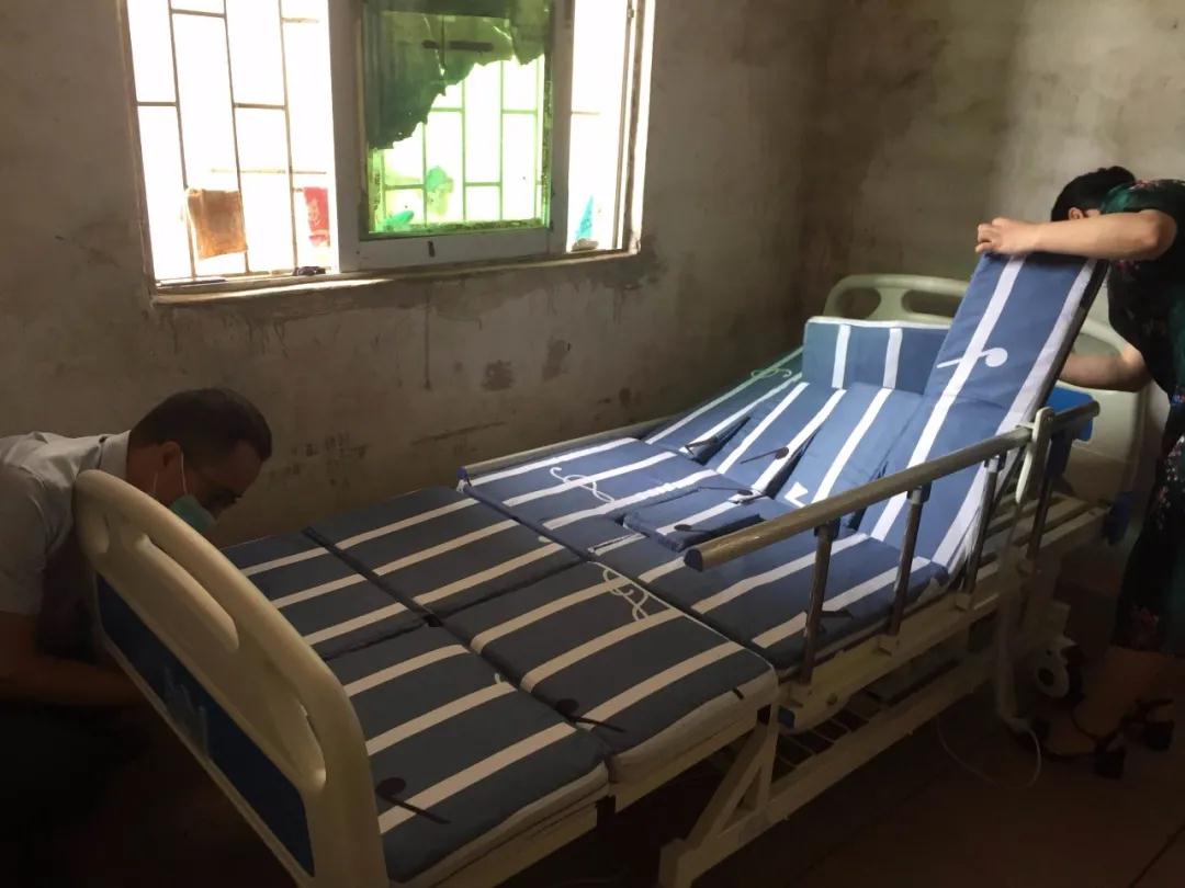 4月底,根據(jù)實(shí)際使用需求,與失能老人家屬確定了具體幫扶方案,訂制了智能護(hù)理床。5月11日安粵公司聯(lián)合銥鳴公司專(zhuān)家再次來(lái)到老人家中,為老人配置安裝智能型全自動(dòng)護(hù)理床。對(duì)老人家屬進(jìn)行實(shí)際操作培訓(xùn),老人可以通過(guò)枕邊的手控器進(jìn)行背、腳體位高低順意調(diào)節(jié)、方便靈活地進(jìn)行水平升降,避免由于長(zhǎng)期臥床而產(chǎn)生褥瘡,并解決了老人下床大小便的等諸多難題。